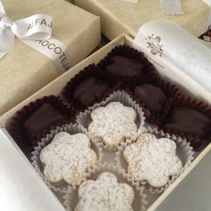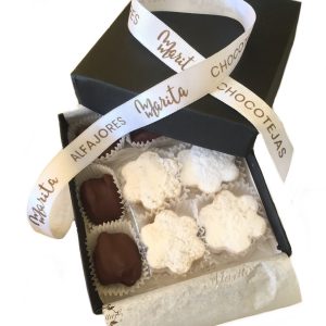 Caja de regalo con chocotejas de Nuez Y Alfajores Marita.
