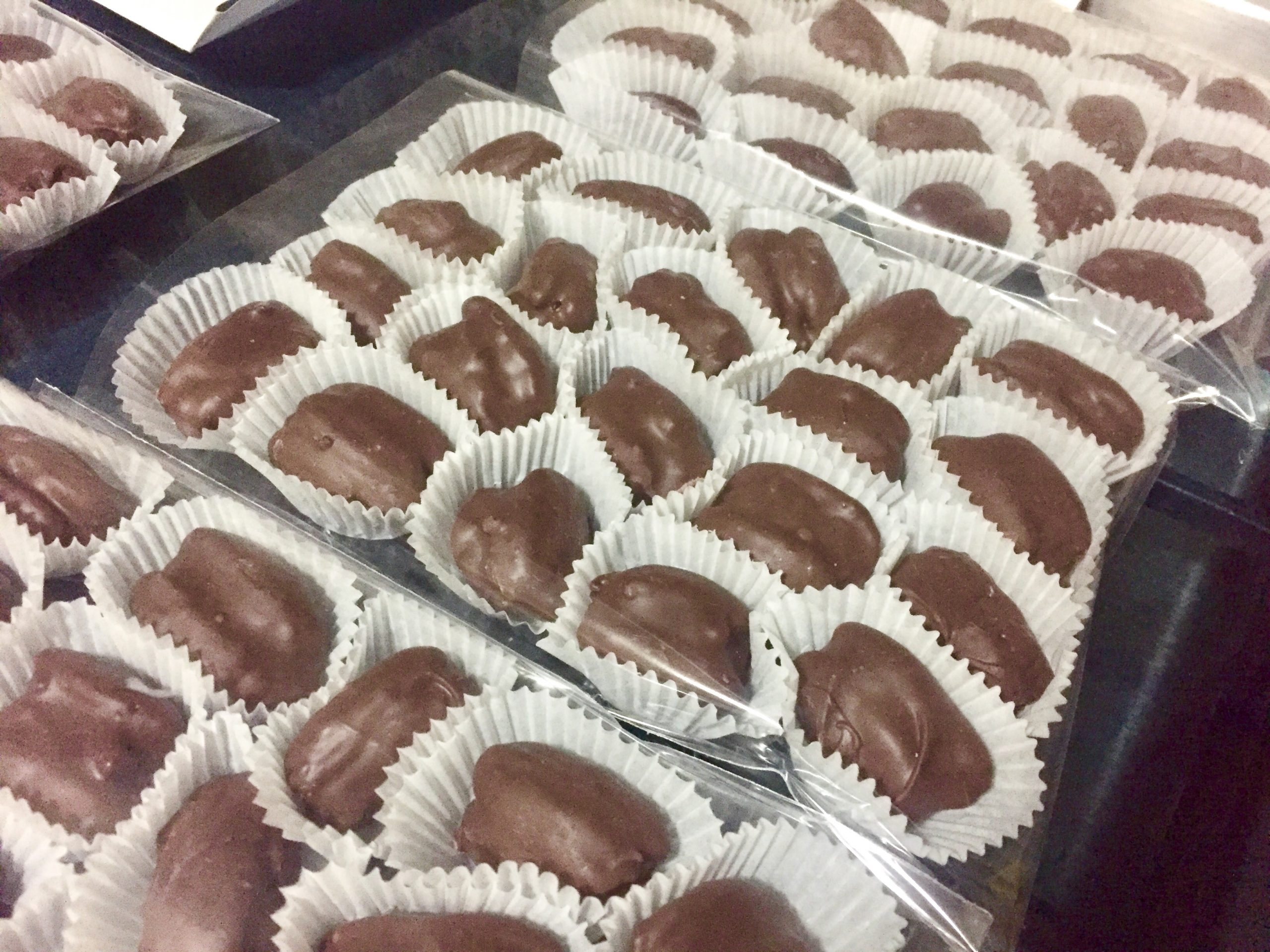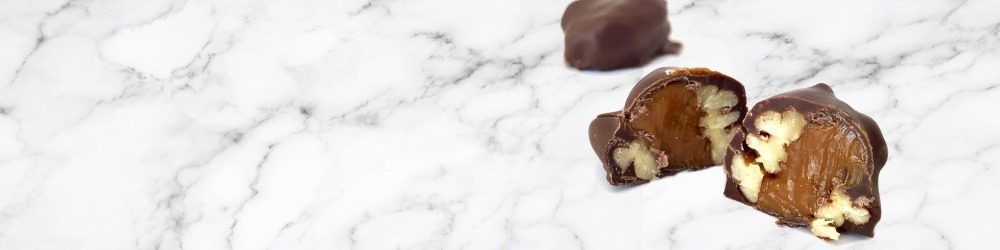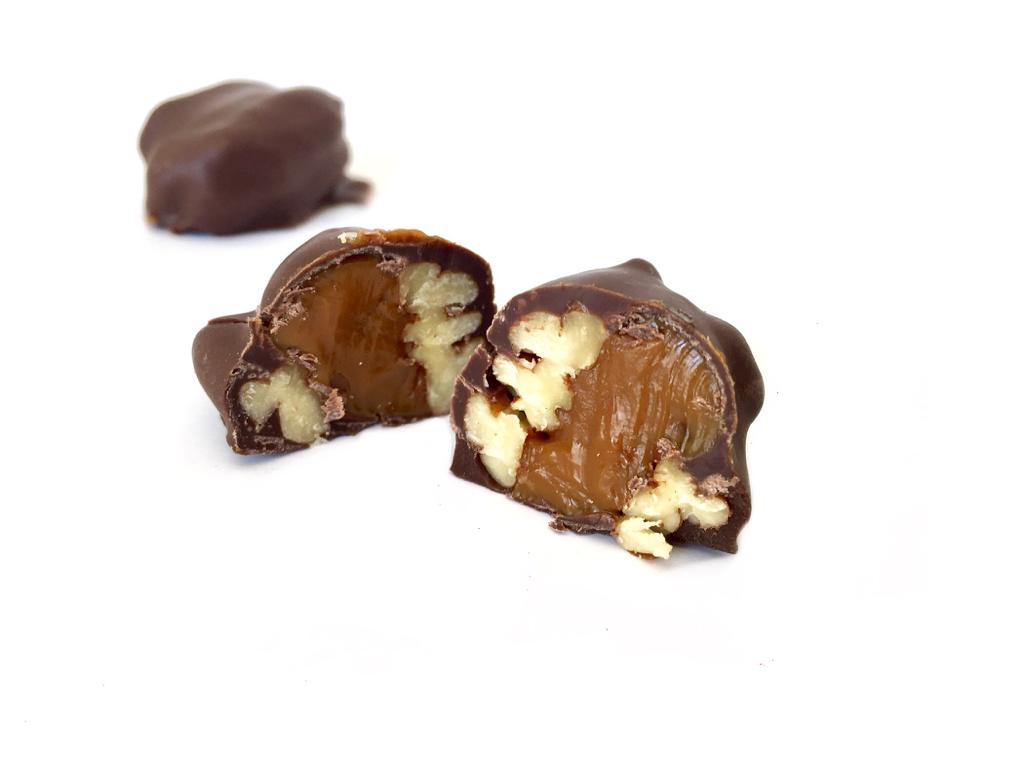 Son nueces pecanas rellenas de dulce de leche de vaca, como una cajeta pero hecha en casa, que después son bañadas con chocolate semi-amargo.